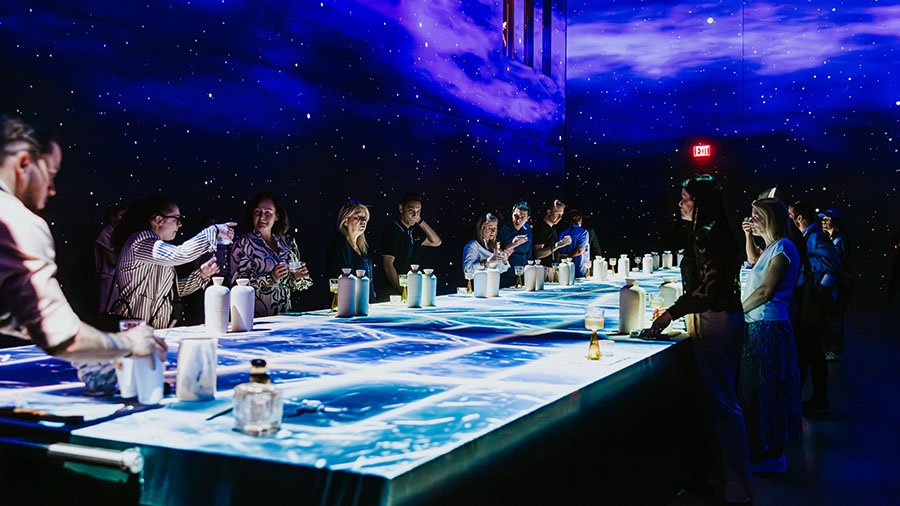 We designed a fully immersive tasting journey across nine rooms, powered by cinematic projection, 4D spatial audio, custom scents like roasted agave and rich oak, and hands-on tasting moments. Guests concluded the experience by crafting their own cocktails and accessing exclusive bottle and merch purchases.