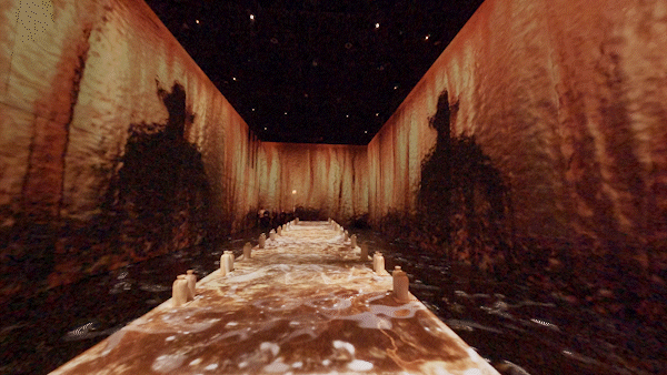 - High-resolution 360° projection mapping with 26 projectors on 40ft ceilings across all walls